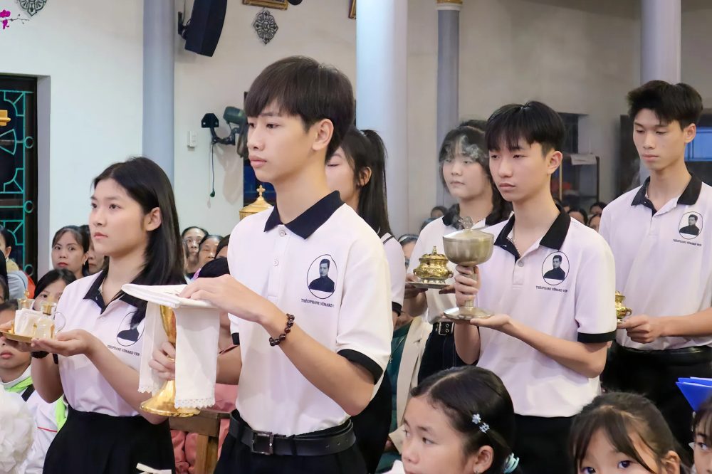 Thứ 2, 3, 4, 6: 18h15 – Thứ 5: 18h30 (Lễ Thiếu Nhi, có Chầu Mình Thánh trước Thánh lễ)