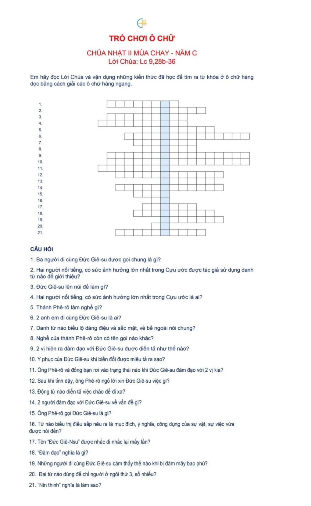 Đáp án: Ô chữ Chúa nhật I mùa Chay 2025 – Năm C