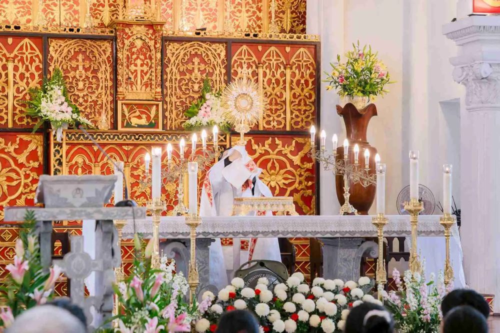 Sau Thánh lễ đồng tế, cộng đoàn tiếp tục sốt sắng chầu Mình Thánh Chúa, lắng đọng tâm hồn trong giây phút thinh lặng bên Chúa Giê-su Thánh Thể.