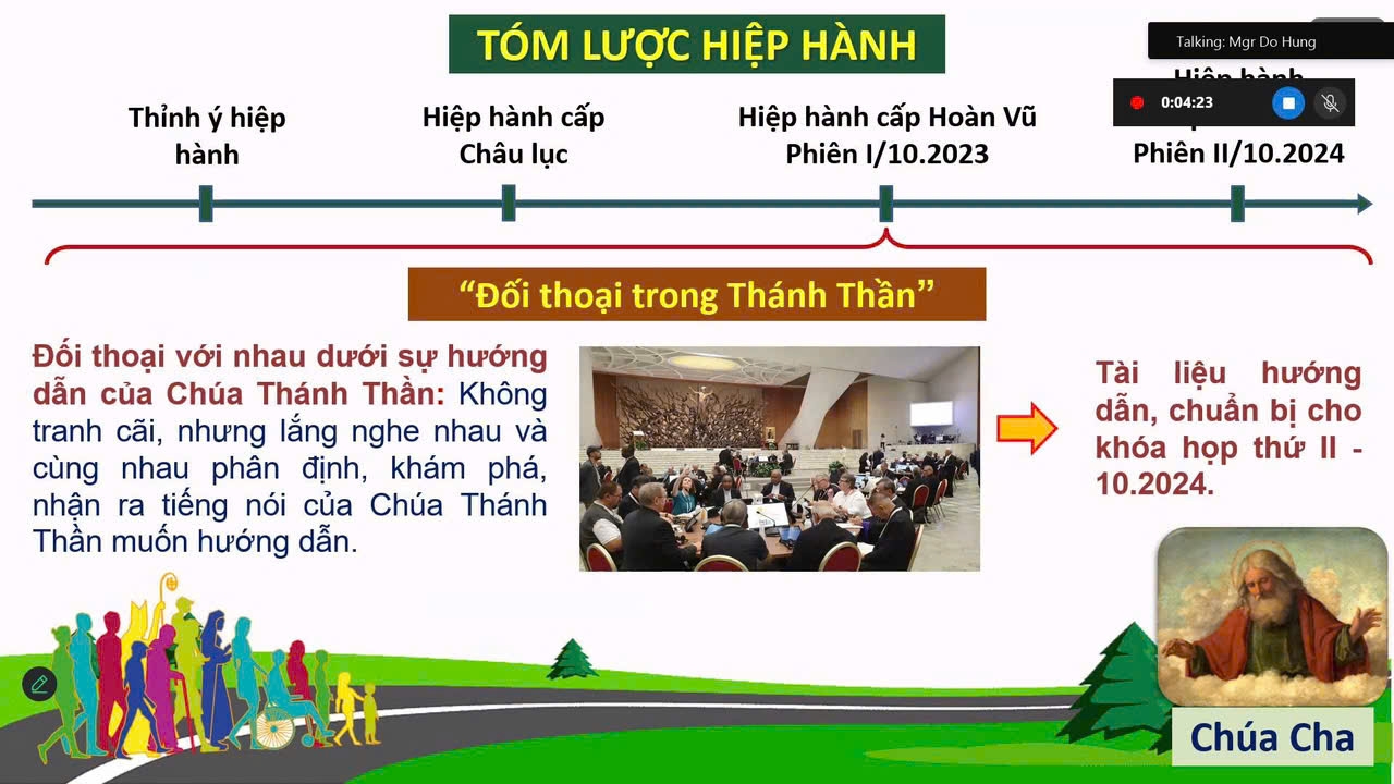 1. Tổng quan tiến trình Hiệp hành 2021–2024: Nhìn lại các thành quả mục vụ đã đạt được, đặc biệt là việc lắng nghe – phân định – tham gia trong đời sống Giáo hội tại Việt Nam.