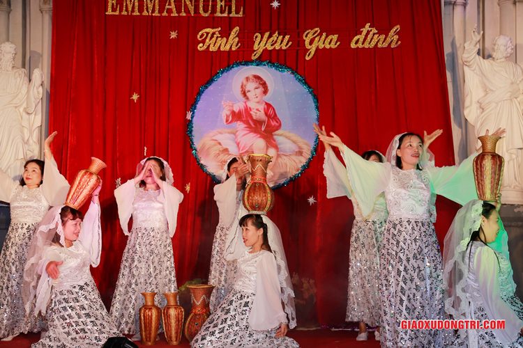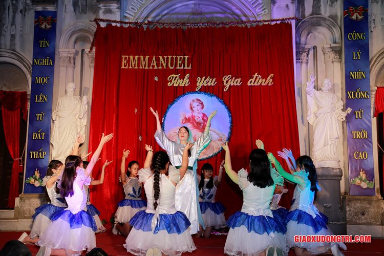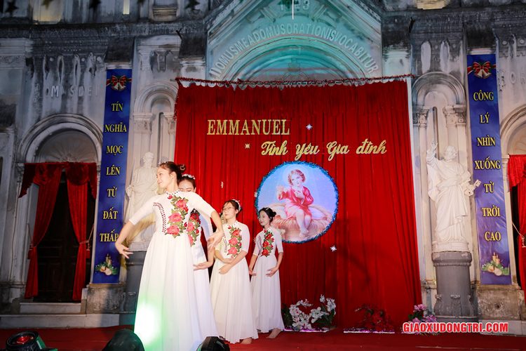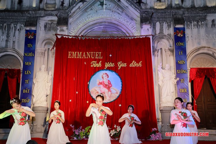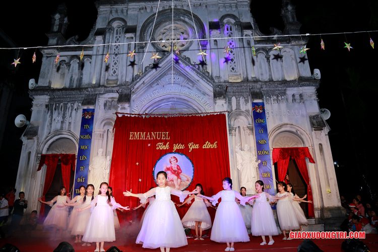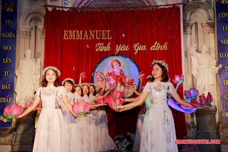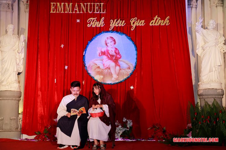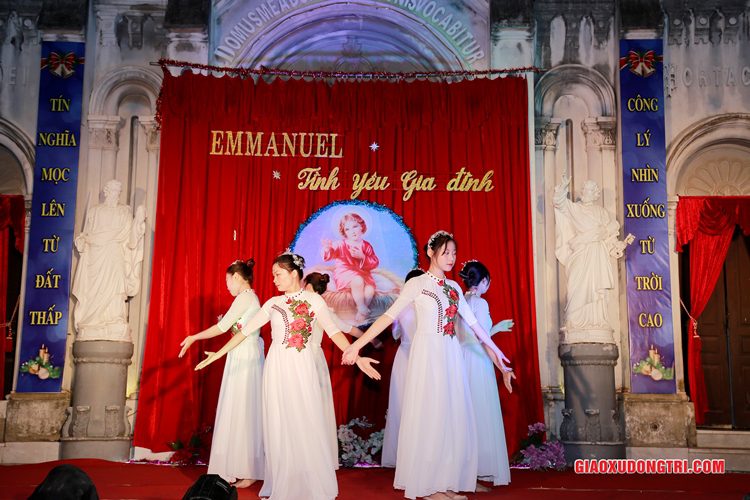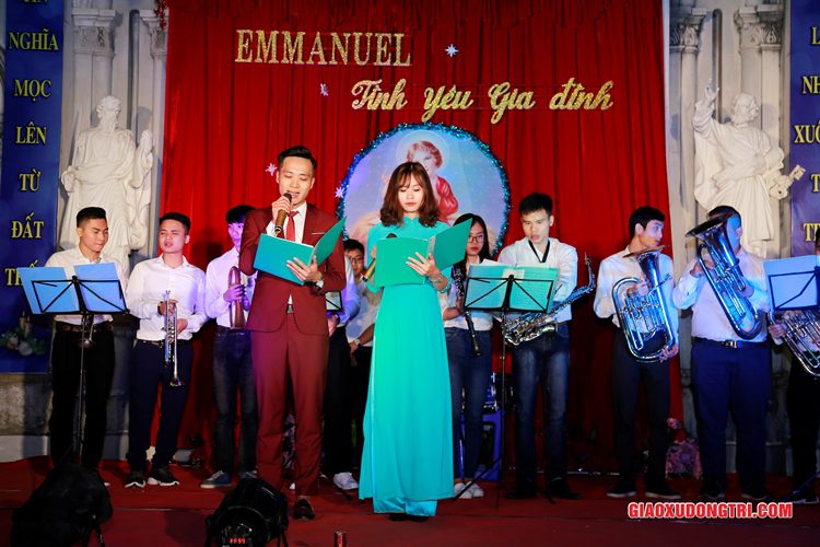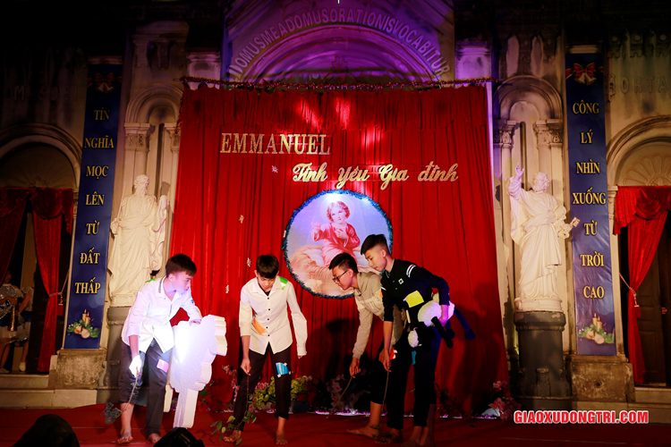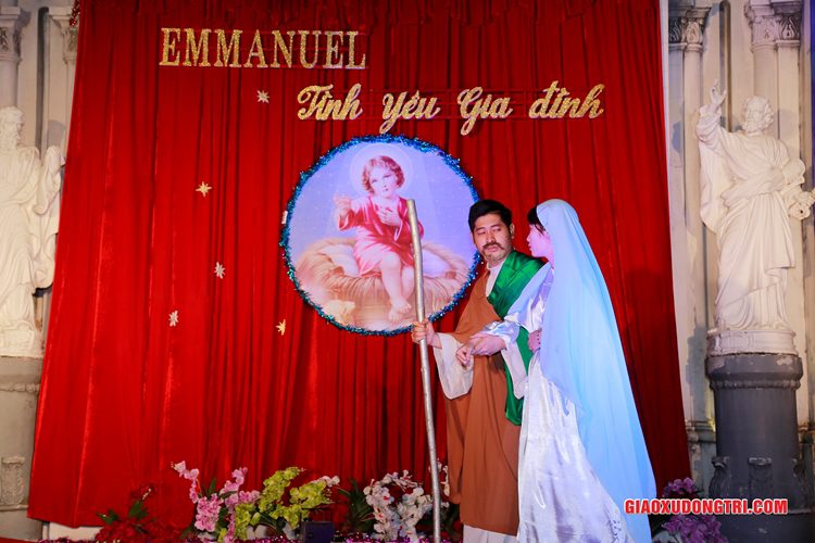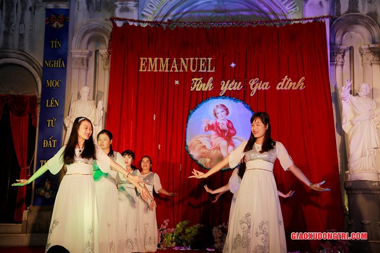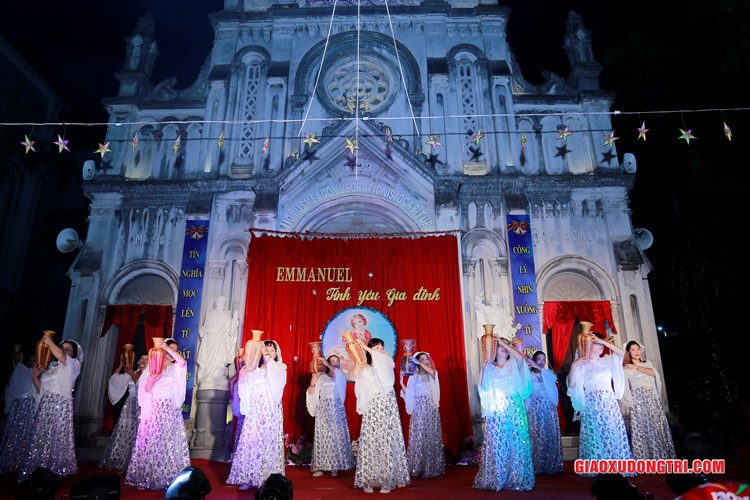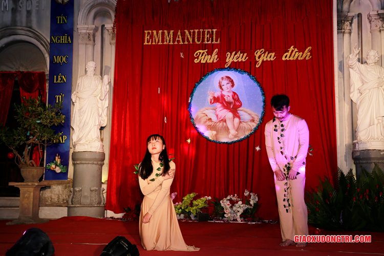 Mặc dù 20h00 chương trình mới bắt đầu nhưng ngay từ lúc còn rất sớm, mọi thành phần Dân Chúa trong giáo xứ và cả các bạn thuộc tôn giáo bạn đã tập chung rất đông tại khu vực Hang đá Giáng sinh và khu vực sân khấu Diễn nguyện. Đúng 20h00, mở đầu cho chương trình, Cha xứ Antôn Trần Duy Lương đã phát biểu khai mạc đêm Diễn nguyện Giáng sinh với chủ đề “Emmanuel – Tình yêu Gia đình” chào mừng Đại lễ Thiên Chúa Giáng Sinh. Sau đó, chương trình hoan ca mừng Chúa Giáng Sinh tiếp tục được diễn ra mang đậm nét nghệ thuật thánh và màu sắc kitô giáo, cũng như sứ điệp yêu thương và sự an bình của đêm thánh này. Các tiết mục đã được các đội diễn trong Giáo xứ và các Giáo họ dày công tập luyện, đã giúp cho cộng đoàn thả hồn vào những bài hát yêu thương, hòa mình vào những vũ khúc sôi động, linh thánh mừng Chúa Giáng Sinh. Đặc biệt với phần diễn nguyện của các em thiếu nhi, các huynh trưởng và các bạn giới trẻ trong giáo xứ, đã giúp cho cộng đoàn lắng đọng tâm hồn để sống lại những trang sử thánh đầu tiên qua hoạt cảnh giáng sinh.