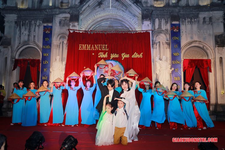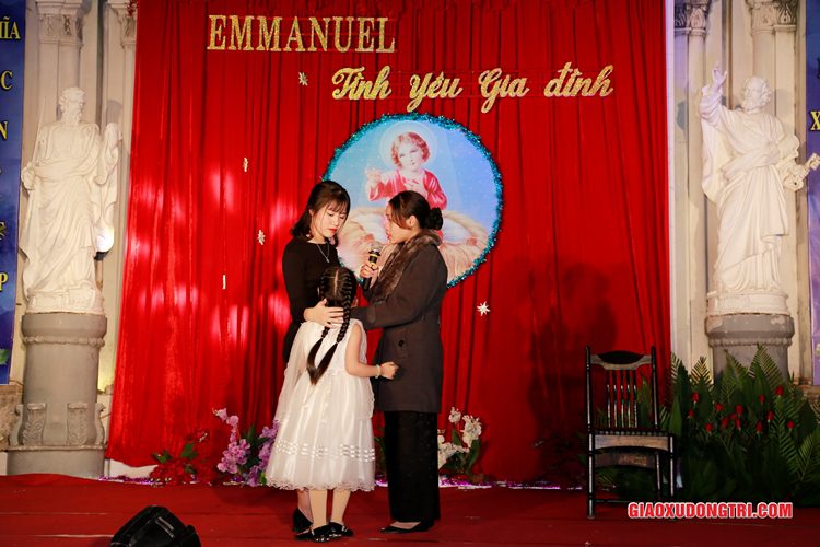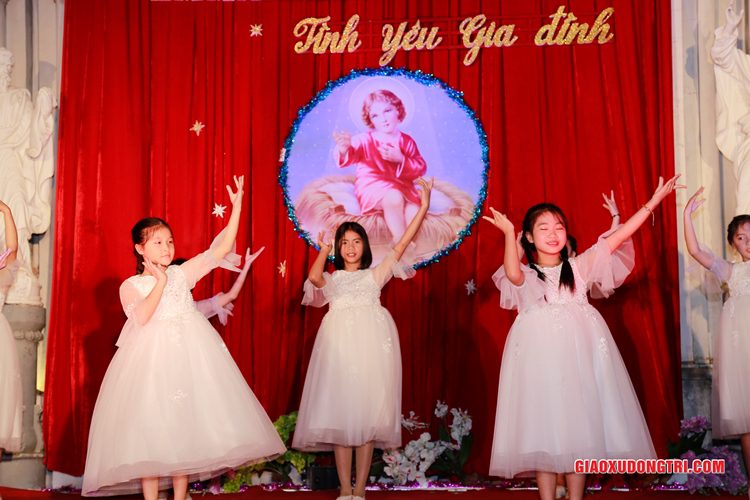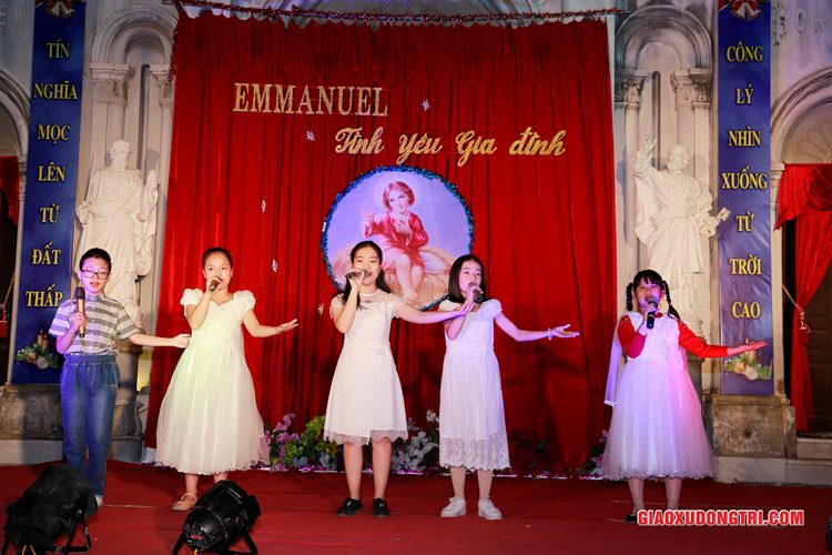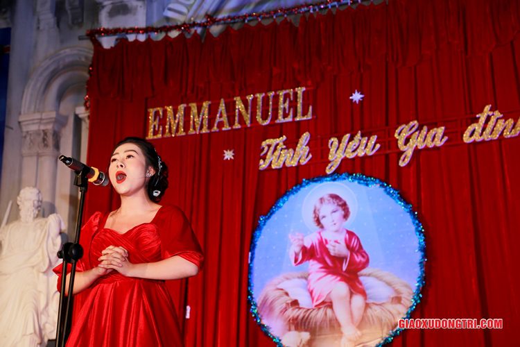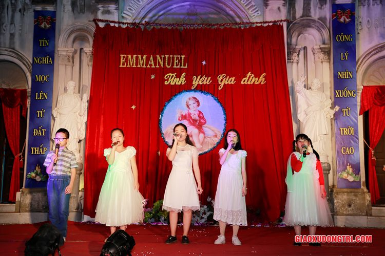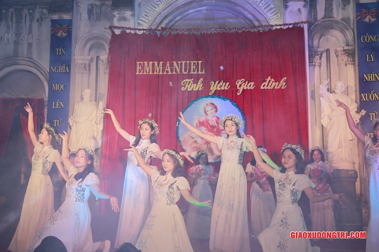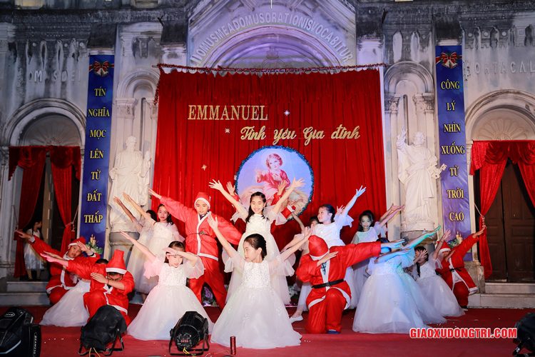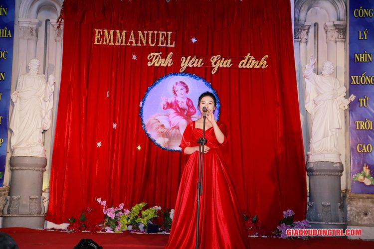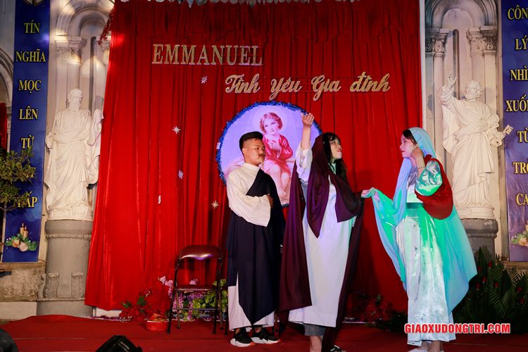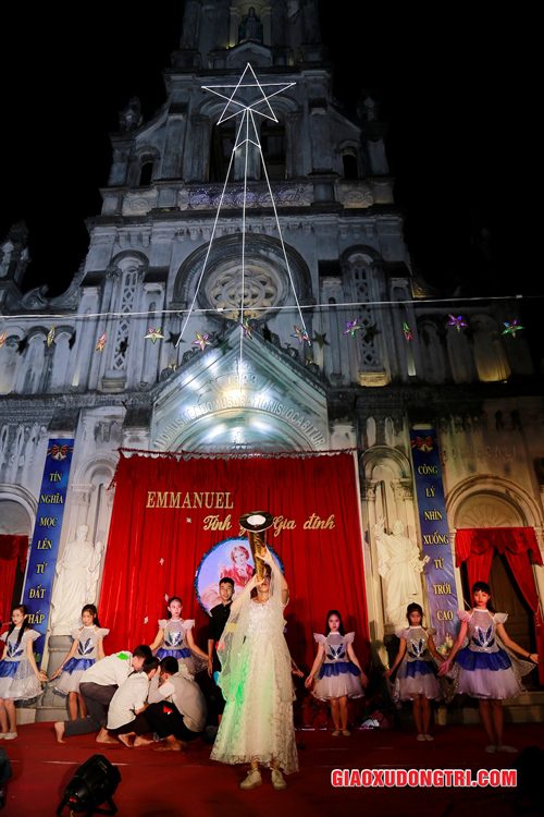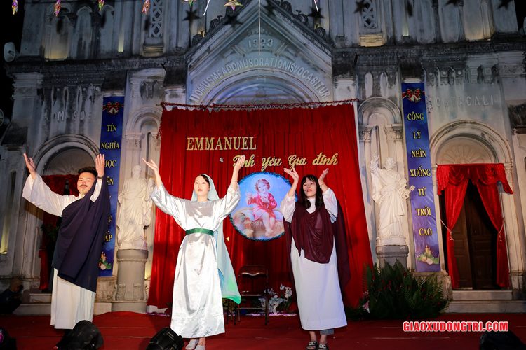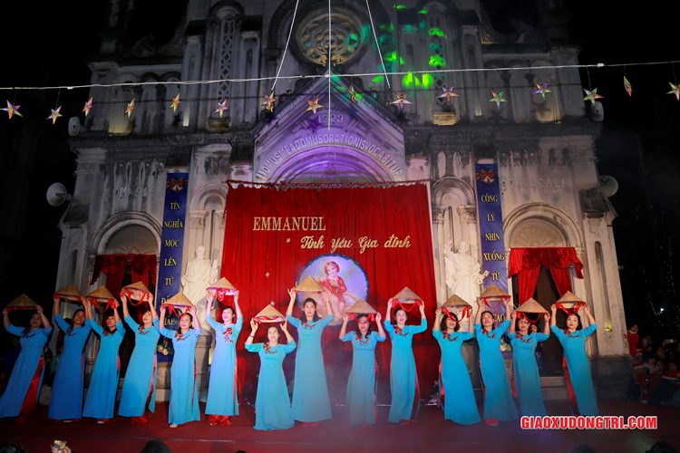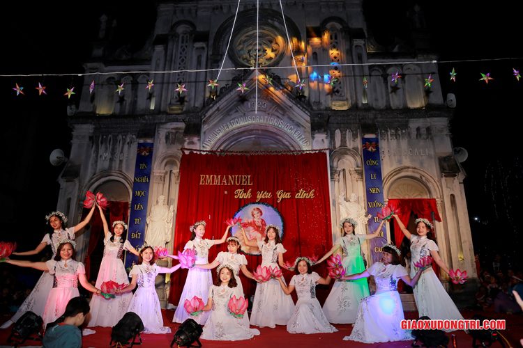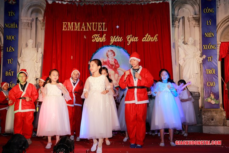 Mặc dù 20h00 chương trình mới bắt đầu nhưng ngay từ lúc còn rất sớm, mọi thành phần Dân Chúa trong giáo xứ và cả các bạn thuộc tôn giáo bạn đã tập chung rất đông tại khu vực Hang đá Giáng sinh và khu vực sân khấu Diễn nguyện. Đúng 20h00, mở đầu cho chương trình, Cha xứ Antôn Trần Duy Lương đã phát biểu khai mạc đêm Diễn nguyện Giáng sinh với chủ đề “Emmanuel – Tình yêu Gia đình” chào mừng Đại lễ Thiên Chúa Giáng Sinh. Sau đó, chương trình hoan ca mừng Chúa Giáng Sinh tiếp tục được diễn ra mang đậm nét nghệ thuật thánh và màu sắc kitô giáo, cũng như sứ điệp yêu thương và sự an bình của đêm thánh này. Các tiết mục đã được các đội diễn trong Giáo xứ và các Giáo họ dày công tập luyện, đã giúp cho cộng đoàn thả hồn vào những bài hát yêu thương, hòa mình vào những vũ khúc sôi động, linh thánh mừng Chúa Giáng Sinh. Đặc biệt với phần diễn nguyện của các em thiếu nhi, các huynh trưởng và các bạn giới trẻ trong giáo xứ, đã giúp cho cộng đoàn lắng đọng tâm hồn để sống lại những trang sử thánh đầu tiên qua hoạt cảnh giáng sinh.