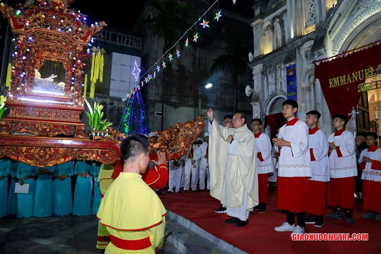 Sau chương trình diễn nguyện, vào lúc 22h00, Cha xứ Antôn đã chủ sự cuộc rước kiệu Chúa Hài Đồng xung quanh khuôn viên Giáo xứ với sự tham dự đông đảo của cộng đoàn.