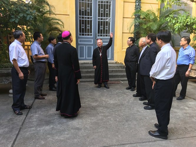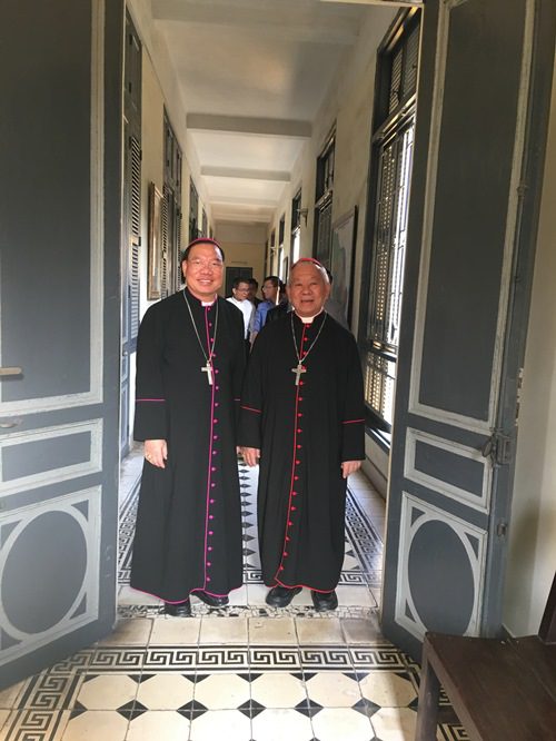 Phái đoàn do Đức Tổng giám mục Giuse dẫn đầu gồm có cha Đại diện của Giám quản Tông toà, quý cha quản hạt, quý cha quản lý và cha thư ký. Tiếp đón Đức Tổng tân cử và phái đoàn đến từ giáo phận Hải Phòng, có Đức Hồng Y Phêrô Nguyễn Văn Nhơn, Đức cha Lôrensô Chu Văn Minh, quý cha quản hạt, quý cha quản lý và cha văn phòng. Đặt chân đến Toà Tổng giám mục Hà Nội, Đức Tân Tổng Giuse và phái đoàn được Đức Hồng Y Phêrô, Đức cha Lôrensô cùng quý cha đón tiếp niềm nở, nồng hậu.