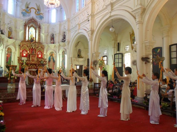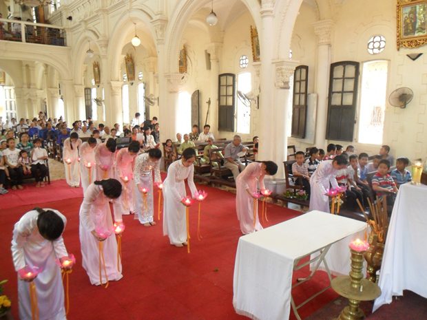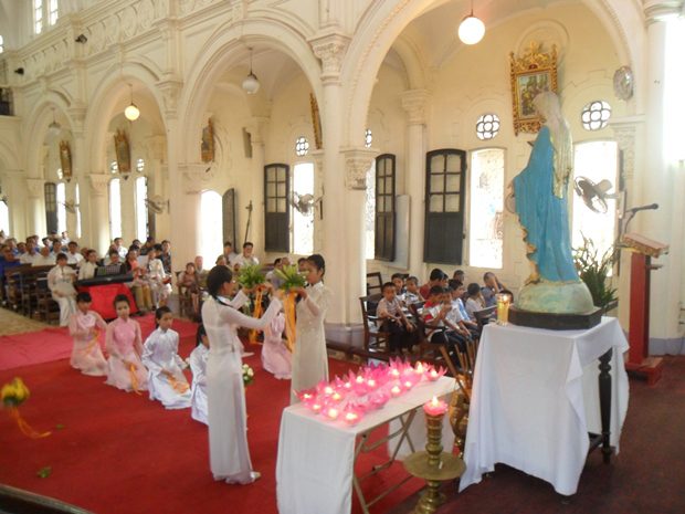 Là người Công giáo Việt Nam, nhất là những ai đã lớn lên trong một xứ đạo miền Bắc, Trung hoặc Nam, có lẽ họ không lạ gì sinh hoạt tôn giáo trong tháng Năm, tháng Hoa Đức Mẹ. Khi ngàn hoa xanh, đỏ, trắng, tím, vàng nở rộ trong cánh đồng, thì con cái Mẹ cũng chuẩn bị cho những đội dâng hoa, những cuộc rước kiệu, để tôn vinh Mẹ trên trời. Những điệu ca quen thuộc trìu mến bỗng nổi dậy trong tâm hồn cách thân thương.