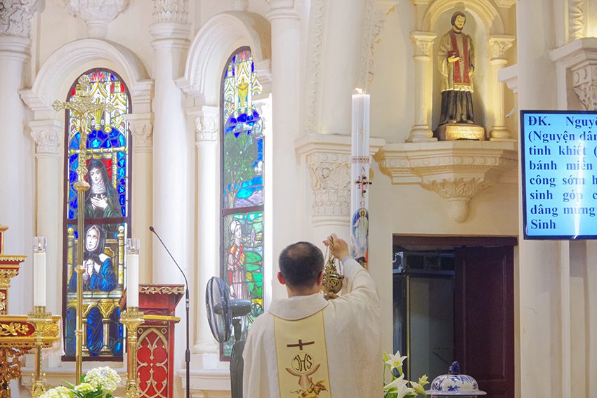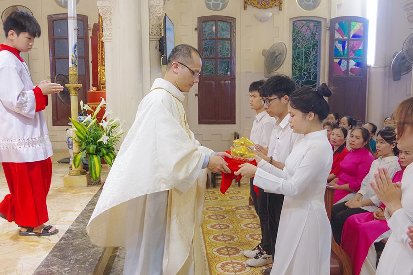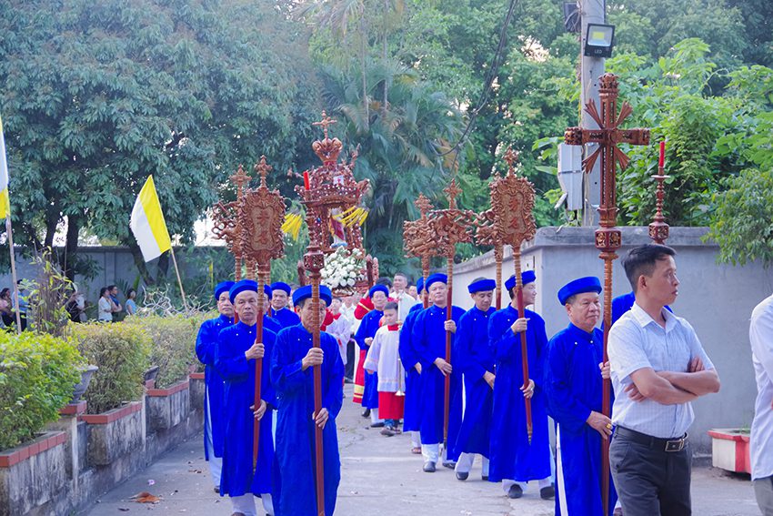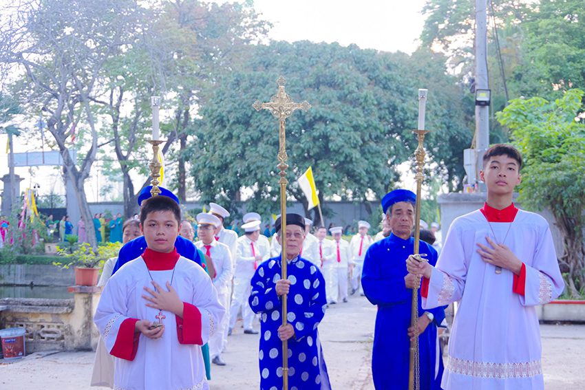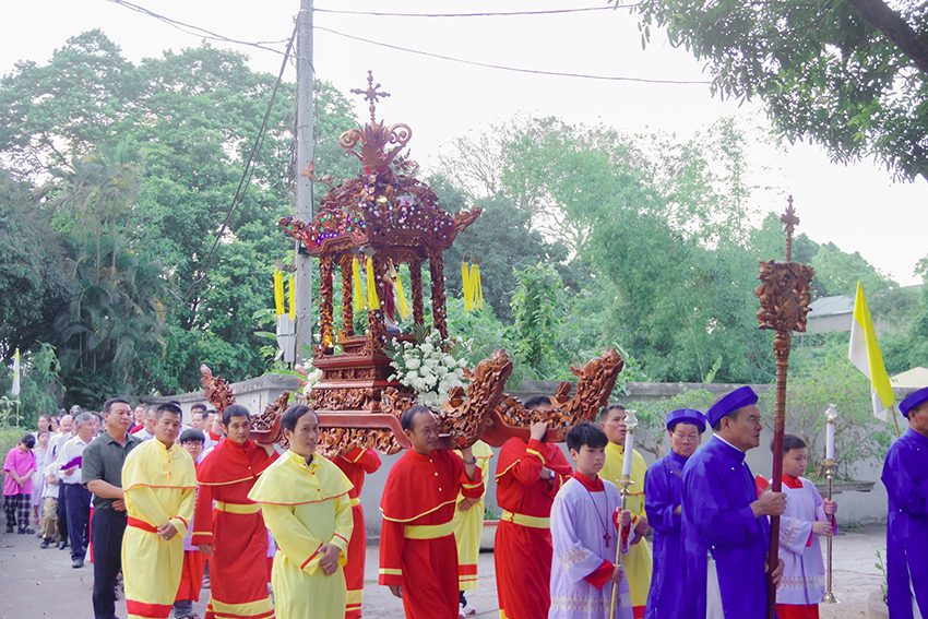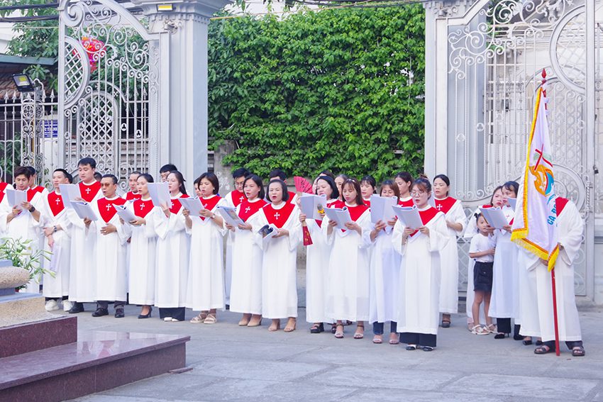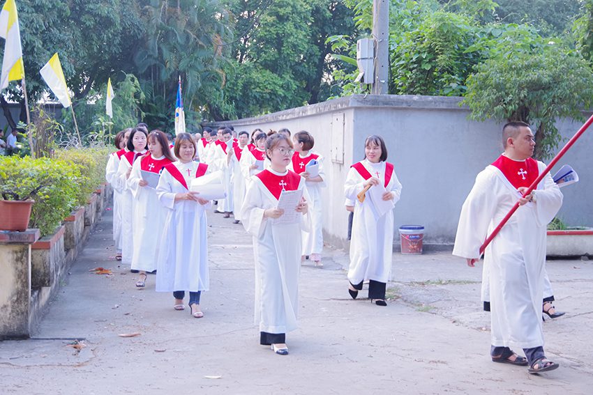 Trước khi bước vào Thánh lễ, Cha xứ Giuse cùng cộng đoàn đã long trọng rước kiệu Chúa Phục Sinh xung quanh khuôn viên Giáo xứ. Sau cuộc rước là Thánh lễ trọng thể mừng Chúa Phục Sinh.