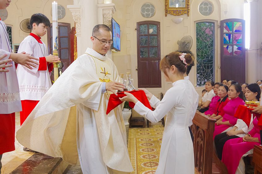 Thánh lễ được tiếp diễn với phần phụng vụ Thánh Thể trong bầu không khí thánh thiêng và sốt sáng.