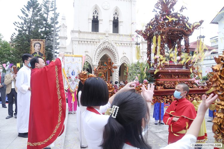 Trước Thánh lễ vào lúc 9h30, cha bản hương Giuse Nguyễn Thực Nghiệm đã chủ sự cuộc rước hài cốt tôn vinh Cha Thánh Ven xung quanh khuôn viên nhà thờ giáo xứ Đồng Trì. Cuộc rước diễn ra trong sự trang nghiêm và sốt sắng của cộng đoàn giáo xứ và quý khách hành hương.