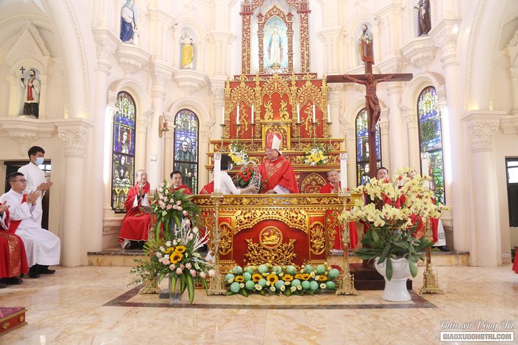 Đúng 10h30, Thánh lễ đại triều đã được cử hành trọng thể do Đức TGM Giuse Vũ Văn Thiên chủ sự. Cùng đồng tế với ngài còn có sự hiện diện của Cha tổng đại diện Antôn Nguyễn Văn Thắng, cha xứ Antôn, các quý Cha nguyên chính xứ, quý Cha trong giáo hạt, quý Cha bản hương, quý tu sỹ, các giáo xứ bạn cùng về hiệp dâng Thánh lễ mừng kính Cha Thánh với cộng đoàn giáo xứ.