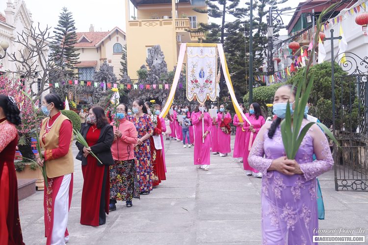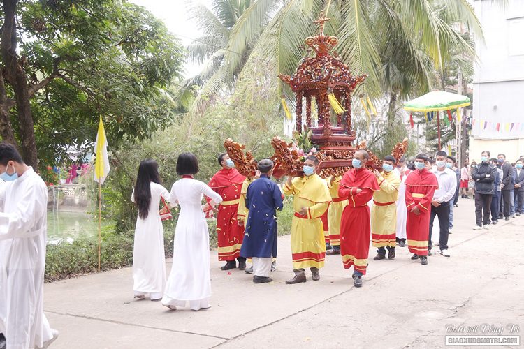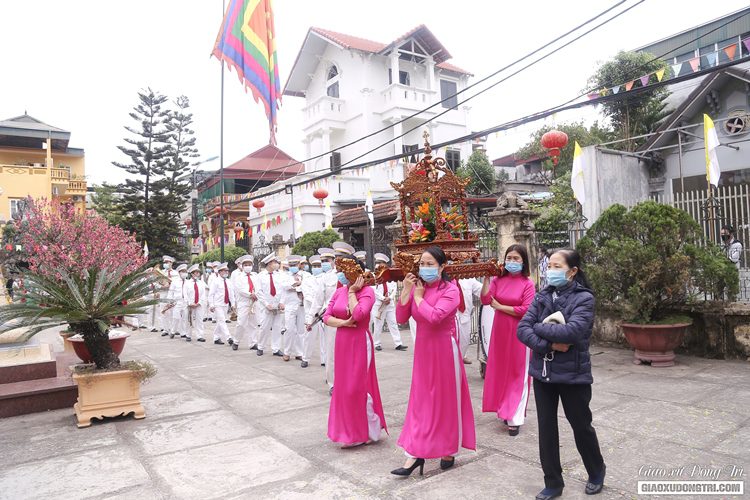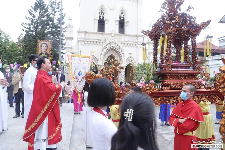 Trước Thánh lễ vào lúc 9h30, cha bản hương Giuse Nguyễn Thực Nghiệm đã chủ sự cuộc rước hài cốt tôn vinh Cha Thánh Ven xung quanh khuôn viên nhà thờ giáo xứ Đồng Trì. Cuộc rước diễn ra trong sự trang nghiêm và sốt sắng của cộng đoàn giáo xứ và quý khách hành hương.