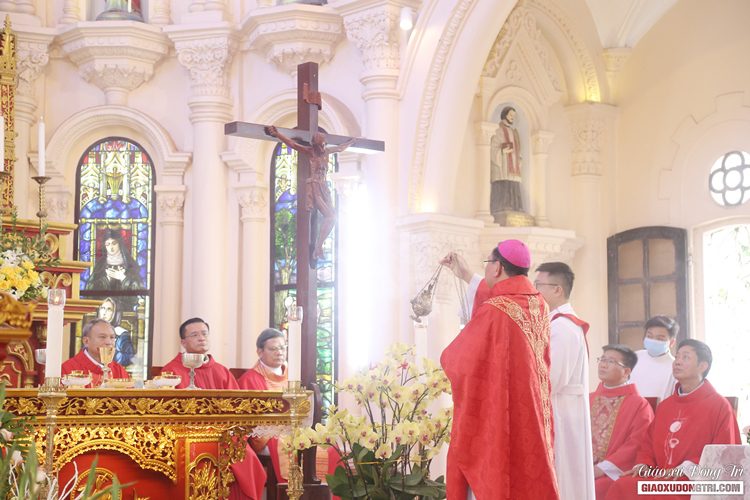 Trong phần chia sẻ Lời Chúa, mở đầu bài giảng, Đức TGM Giuse giải thích cho cộng đoàn ý nghĩa của mùa Chay. Đây chính là mùa để chúng ta suy ngắm sự thương khó của Chúa Giêsu để rồi chúng ta cử hành một cách sốt sáng, có ý thức và có ý nghĩa cử hành lễ nghi Tuần Thánh và mừng lễ Phục Sinh. Ngài cũng nhấn mạnh về sự hiến trọn cuộc đời mình cho công cuộc rao giảng Tin Mừng Chúa Kitô tại Việt Nam của Thánh Théophane Vénard (Ven) qua mầu nhiệm Thập Giá: “Thập Giá là một dụng cụ trong thời xa xưa quá khứ để hành hình và thi hành án tử cho những người bị kết án tử hình. Nhưng kể từ ngày Chúa Giêsu chịu treo trên Thập Giá thì Thập Giá đã trở nên một ý nghĩa của biểu tượng đức tin đối với người Kitô giáo. Thập giá đã trở nên dấu chỉ của tình yêu thương, dấu chỉ của lòng bao dung và Thập Giá cũng là dấu chỉ của lòng nhân hậu và giàu lòng thương xót của Thiên Chúa… Noi gương Chúa Giêsu, Cha Thánh Théophane Vénard (Ven) đã rao giảng Thập Giá, đã sống mầu nhiệm Thập Giá và Thánh nhân đã trung thành với lý tưởng Kitô giáo, đã trung thành với cây Thập Giá bởi vì cây Thập Giá diễn tả lòng nhân hậu của Chúa, cây Thập Giá diễn tả tình yêu thương của Người và cây Thập Giá diễn tả tình yêu của Chúa dành cho con người”. Mừng kính sinh nhật nước trời của Cha Thánh Ven, Đức TGM Giuse mời gọi mọi người cầu nguyện để nhận ra đâu là Thập Giá trong đời sống của mình, và xin Thánh Théophane Vénard cầu bầu cùng Chúa cho chúng ta biết noi gương theo Người, đón nhận Thập Giá và trung thành với mầu nhiệm Thập Giá.