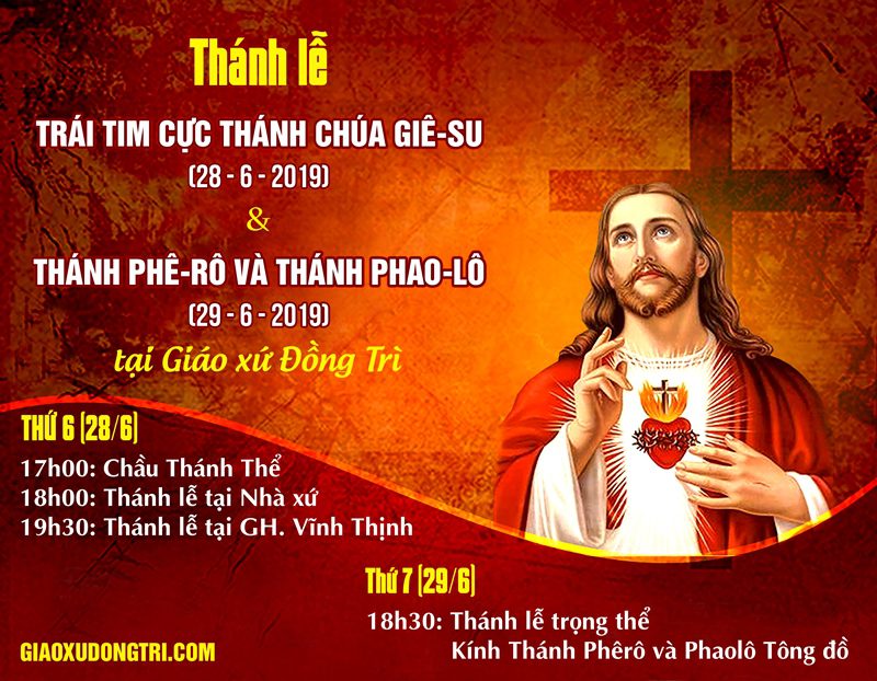 Thông báo, Tin Giáo xứGiờ Thánh lễ Trái Tim Cực Thánh Chúa Giêsu và Lễ Thánh Phêrô – Phaolô Tông đồ 26/06/201926/06/2019 26 Th6