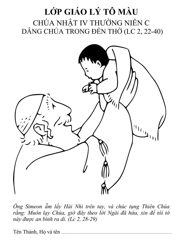 Tranh tô màu – Chúa Nhật IV Thường niên – Dâng Chúa trong Đền thờ