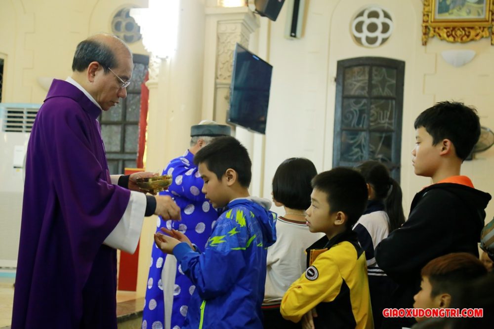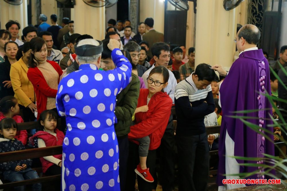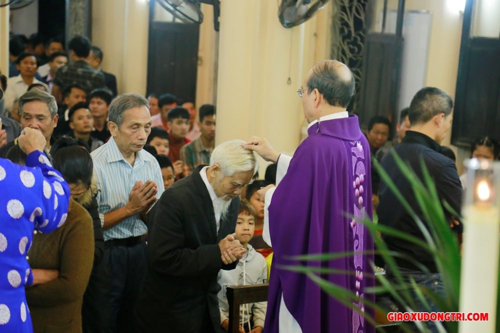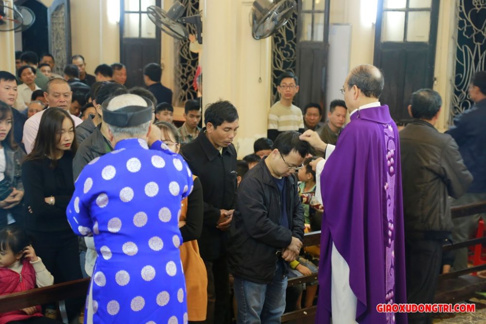 Sau bài giảng, Cha xứ Antôn đã long trọng đọc lời nguyện làm phép tro. Với bầu khí thánh thiêng, cộng đoàn dân Chúa trong giáo xứ đã sốt sắng tiến lên để được xức tro trên đầu với lời mời gọi “Hãy ăn năn sám hối và tin vào Phúc Âm”.