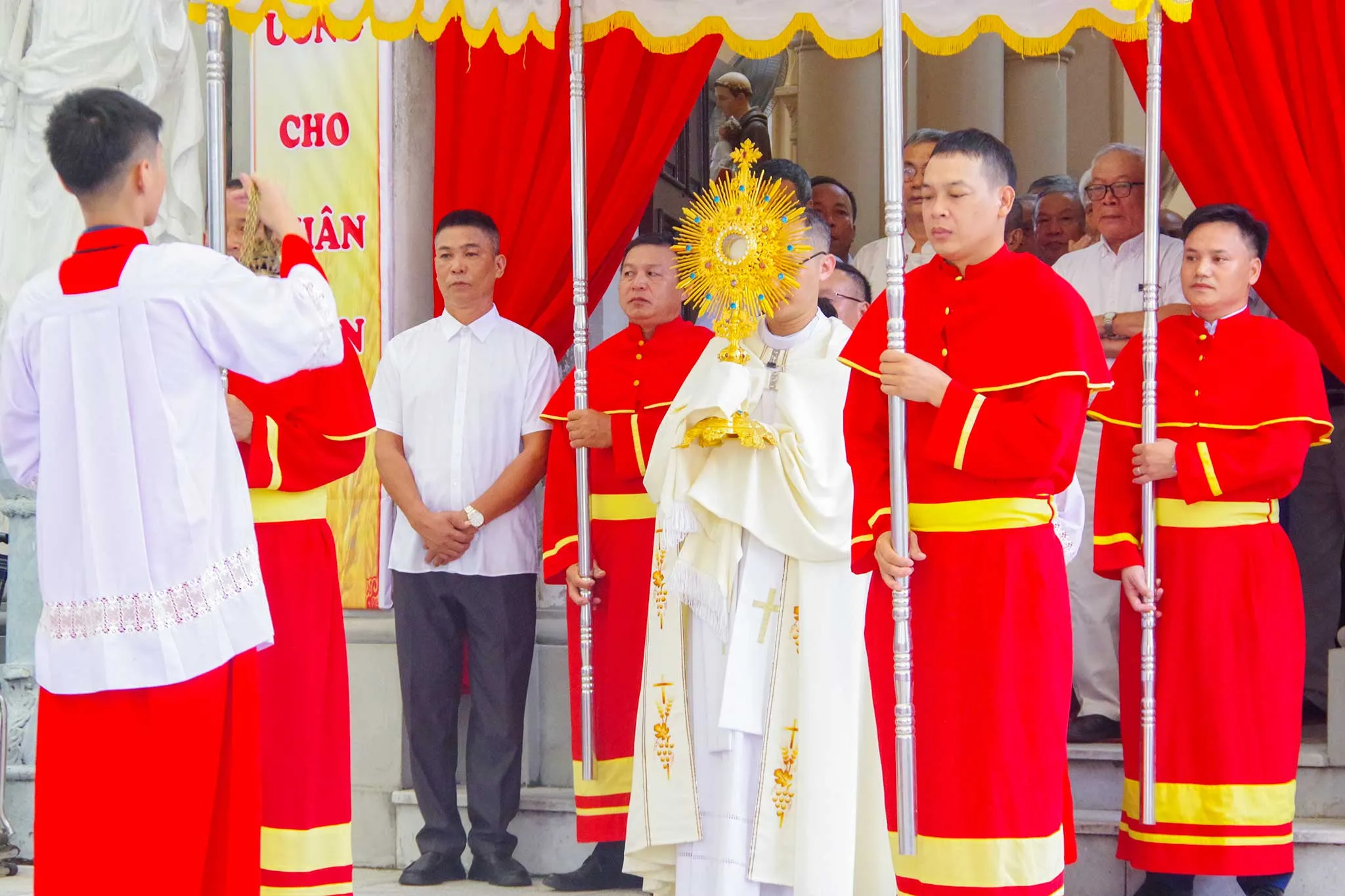Cao điểm của ngày Chầu là Thánh lễ đồng tế do Cha Tổng Đại diện An-tôn Nguyễn Văn Thắng chủ sự. Bầu khí trang trọng của Thánh lễ giúp cộng đoàn cảm nghiệm bí tích Thánh Thể là trung tâm đời sống đức tin của mỗi tín hữu. Chúa Giê-su Thánh Thể luôn mời gọi và chờ đợi mỗi người đến với Ngài, để kín múc nguồn sức sống thiêng liêng nuôi dưỡng linh hồn.