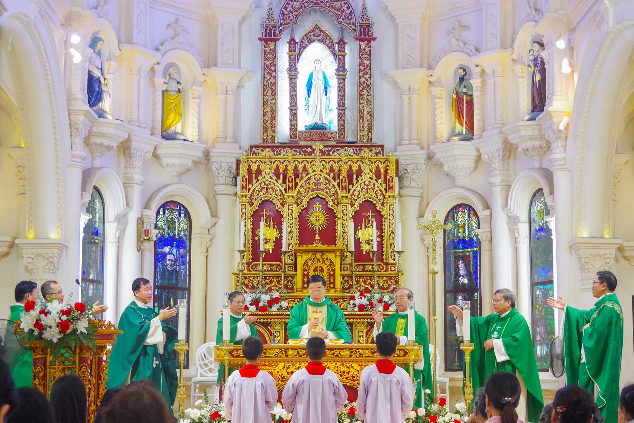 Cao điểm của ngày Chầu là Thánh lễ đồng tế do Cha Tổng Đại diện An-tôn Nguyễn Văn Thắng chủ sự. Bầu khí trang trọng của Thánh lễ giúp cộng đoàn cảm nghiệm bí tích Thánh Thể là trung tâm đời sống đức tin của mỗi tín hữu. Chúa Giê-su Thánh Thể luôn mời gọi và chờ đợi mỗi người đến với Ngài, để kín múc nguồn sức sống thiêng liêng nuôi dưỡng linh hồn.