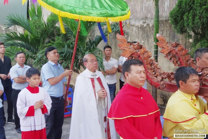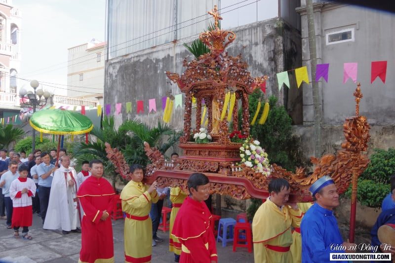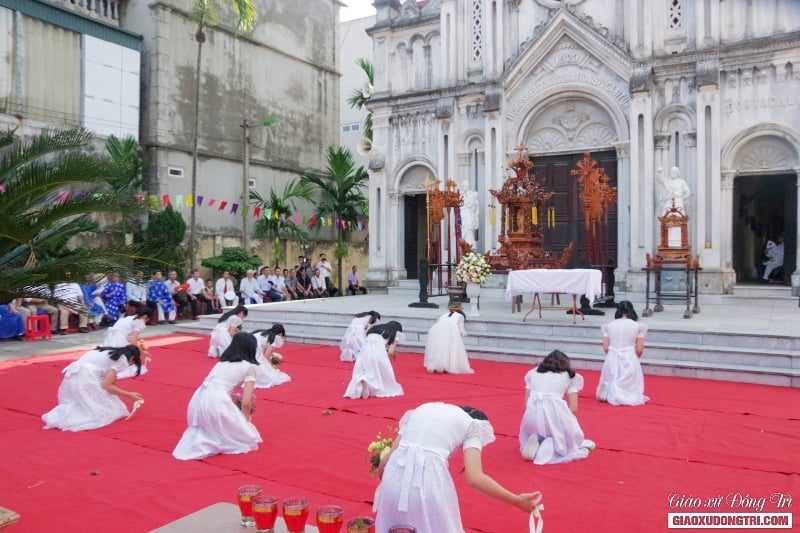 Do ngày lễ hôm nay cũng trùng với ngày cuối tháng kính Đức Mẹ. Theo truyền thống, vào trước Thánh lễ, Giáo xứ đã tổ chức dâng hoa và rước kiệu tôn kính Đức Mẹ xunh quanh khuôn viên giáo xứ để bế mạc tháng Hoa kính Đức Mẹ.