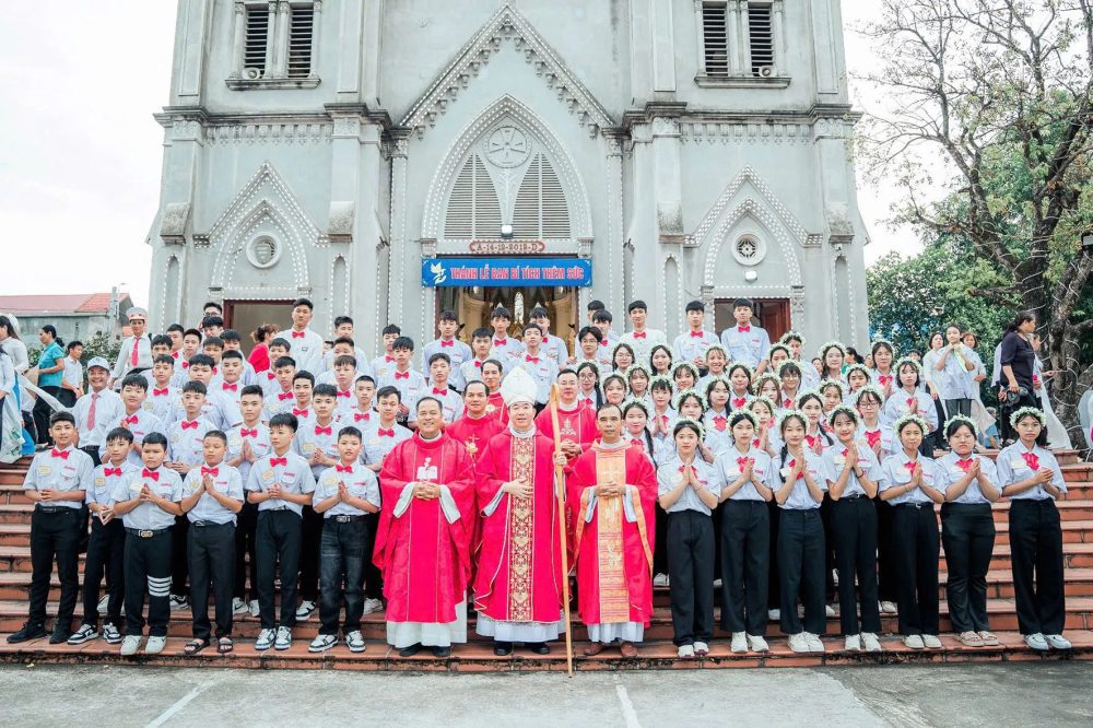 Sáng Chúa nhật, ngày 17/8/2025, trong bầu khí vui tươi nhộn nhịp, cộng đoàn Giáo xứ Bút Sơn hân hoan chào đón Đức cha Phụ tá Giu-se Vũ Công Viện về chủ sự Thánh lễ và ban Bí tích Thêm Sức cho 75 em thiếu nhi trong Giáo xứ, trong đó có 44 em nam và 31 em nữ.