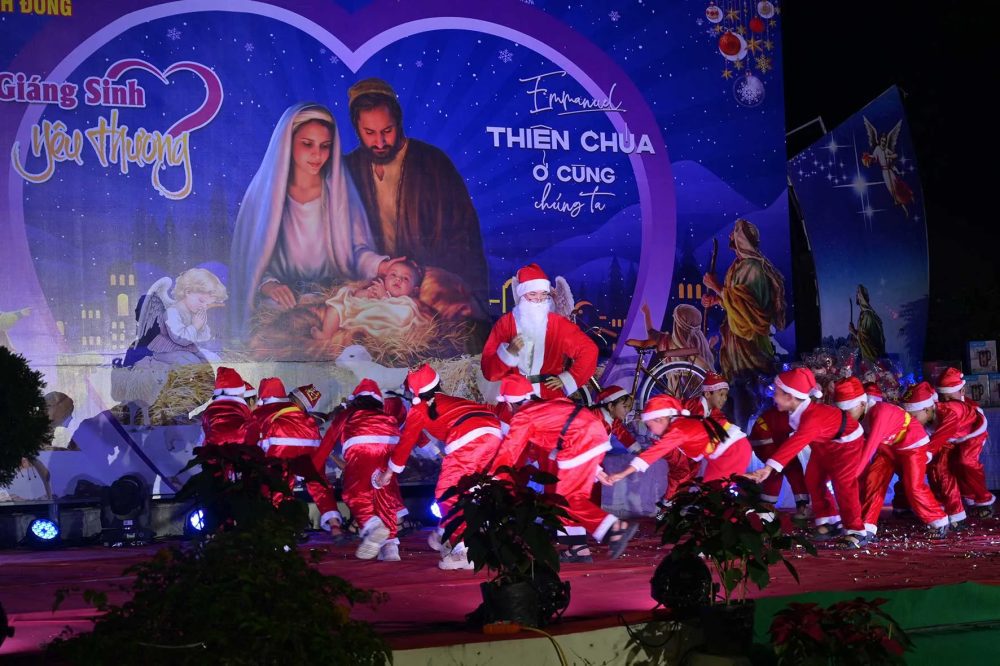 Kết thúc Thánh lễ, các em thiếu nhi tiến ra Hang đá Giáng Sinh, sốt sắng dâng lên Chúa Hài Đồng những lời cầu nguyện qua lời chuyển cầu của Các Thánh Anh Hài, xin Người luôn đồng hành, gìn giữ và chúc lành cho Xứ đoàn ngày càng thăng tiến trong đời sống đức tin và tinh thần phục vụ.
