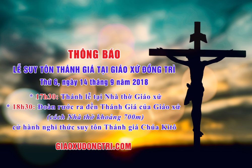 Thông báo: Giờ lễ Lễ Suy Tôn Thánh Giá tại Giáo xứ Đồng Trì (14/9/2018)...