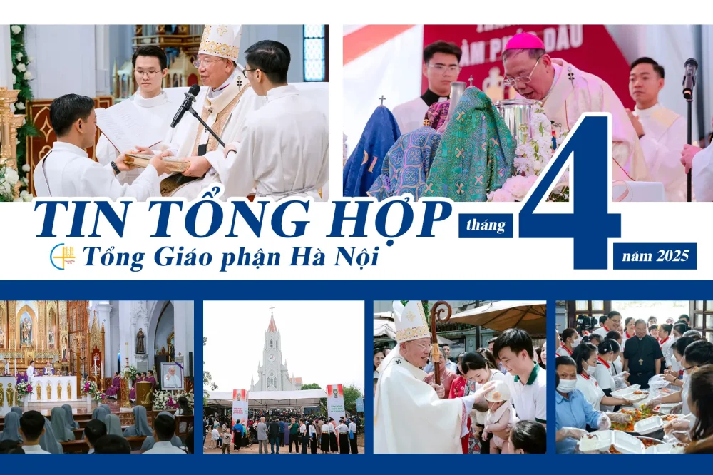 Điểm lại những hoạt động nổi bật tại Tổng Giáo phận (TGP) Hà Nội trong tháng 4/2025: Thánh lễ truyền chức Phó tế cho 18 chủng sinh; Hàng ngàn người trở về Giáo xứ Mường Cắt tham dự ngày hành hương cấp giáo phận; Thánh lễ Truyền Dầu năm 2025 tại Giáo xứ Hoàng Nguyên; Đức Tổng Giám mục (TGM) Giu-se Vũ Văn Thiên thăm “Bữa cơm yêu thương” trong Tuần Thánh; Niềm vui mừng Đại lễ Chúa Phục sinh tại TGP Hà Nội; Thánh lễ cầu nguyện cho Đức cố Giáo Hoàng Phan-xi-cô tại Nhà thờ Chính Tòa Hà Nội; Giáo xứ Tiêu Động Thượng và Tụy Hiền mừng các thánh tử đạo quê hương.