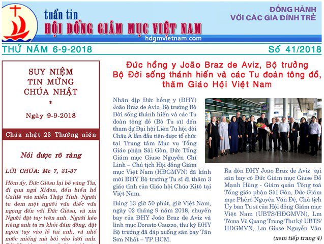Tuần tin Hội đồng Giám mục Việt Nam số 39/2018