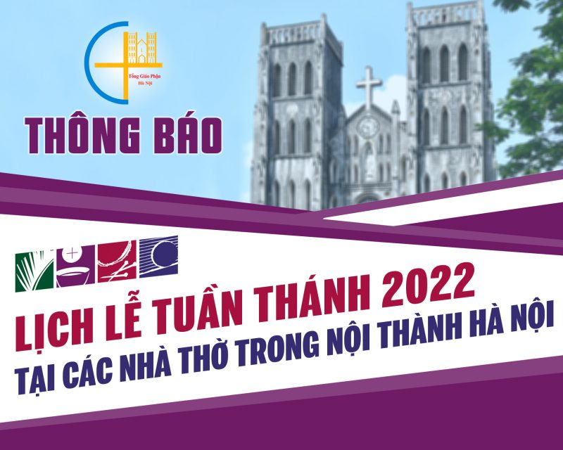 LỊCH LỄ TUẦN THÁNH 2022 TẠI CÁC NHÀ THỜ TRONG NỘI THÀNH HÀ NỘI Quận Hoàn Kiếm (Nhà thờ Chính Tòa; Nhà thờ Hàm Long; Nhà thờ Trung Trí) Quận Ba Đình (Nhà thờ Cửa Bắc) Quận Hai Bà Trưng (Nhà thờ Tân Lạc) Quận Đống Đa (Nhà thờ Thái Hà, Hàng Bột) Quận Tây Hồ (Nhà thờ Thượng Thụy,......